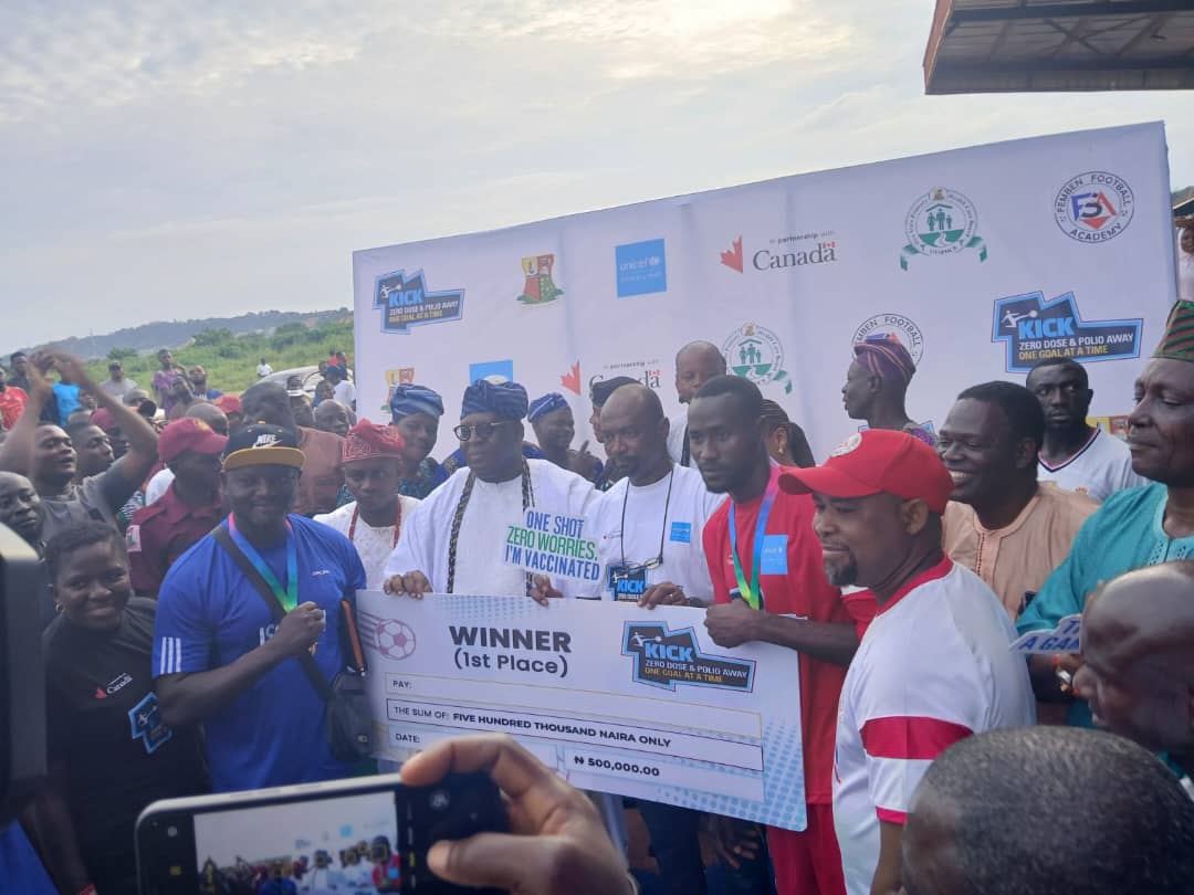 The tournament, jointly organised by the Oyo State Primary Health Care Board (OYPHCB), the United Nations Children’s Fund (UNICEF), and Femben Football Academy, was designed as a community-led intervention to promote routine immunisation and sensitise fathers on their role in protecting children from vaccine-preventable diseases.