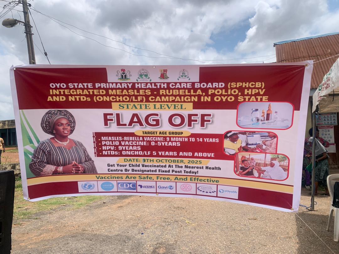 Mrs Makinde made the call during the 2025 Integrated Measles-Rubella Campaign flag-off ceremony in collaboration with the National Primary Health Care Development Agency, NPHCDA, and development partners such as World Health Organisation, WHO, United Nations Children’s Fund UNICEF, and AFENET, held at Ibadan North-east Secretariat, Ibadan.