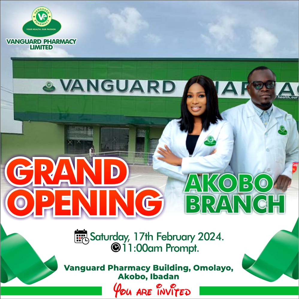 The ceremony will take place at the new Vanguard Pharmacy Limited building, Omolayo, Akobo, Ibadan, on Saturday, 17th of February, at 11 O’clock in the morning.